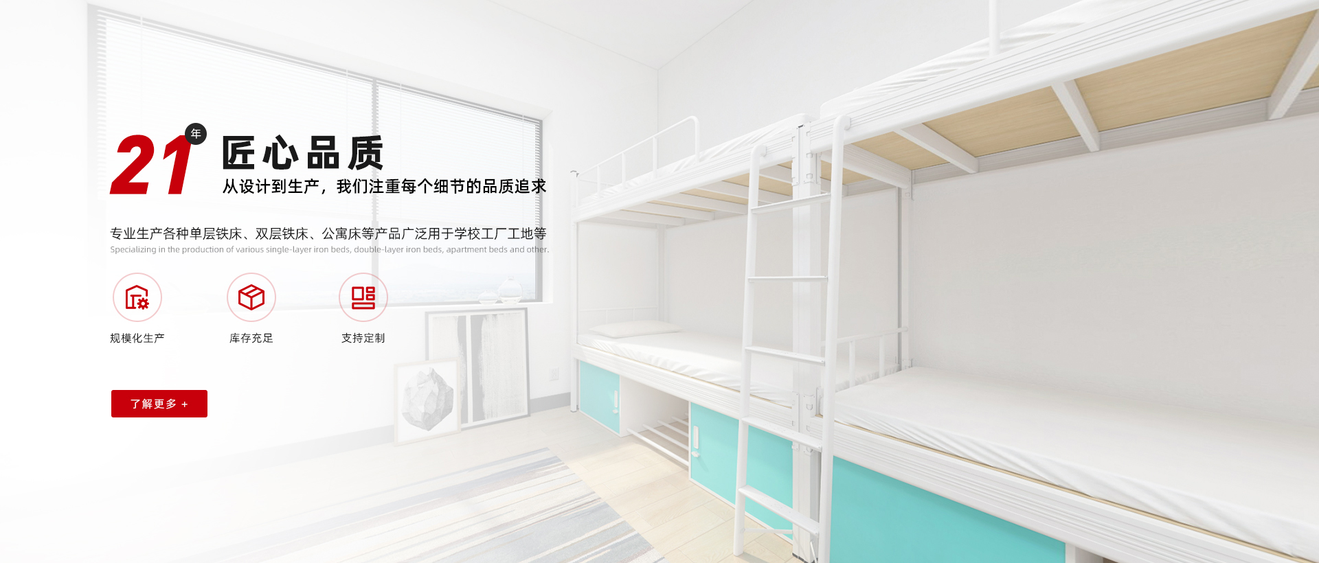 冠迪五金-看得見的鐵床生產實力 現(xiàn)代化生產制造企業(yè),為超過1000企業(yè)單位提供公寓宿舍鐵床鐵柜整體解決方案